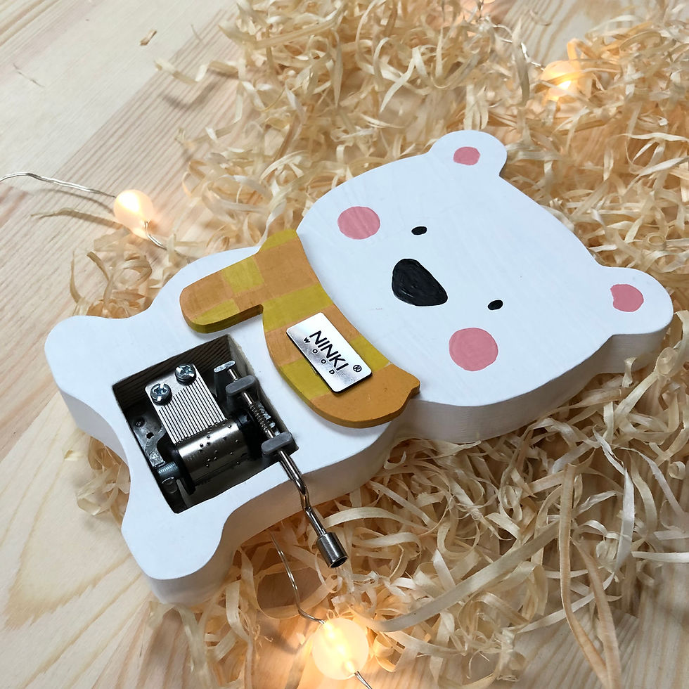 Pozytywka Miś Śnieżek ( z żółtym szaliczkiem )